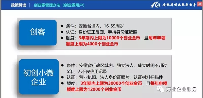 為貫徹落實黨的十九大關于鼓勵創(chuàng)業(yè)帶動就業(yè)的精神,深入實施安徽省五大發(fā)展行動計劃,提升創(chuàng)業(yè)和初創(chuàng)企業(yè)在共建共享發(fā)展中有更多獲得感,降低創(chuàng)業(yè)成本,安徽省人社廳與財政廳通過發(fā)行電子創(chuàng)業(yè)劵的形式為創(chuàng)業(yè)者和初創(chuàng)企業(yè)提供補貼。全省16個地市30多家服務商滿足你創(chuàng)業(yè)期間的所有需求。