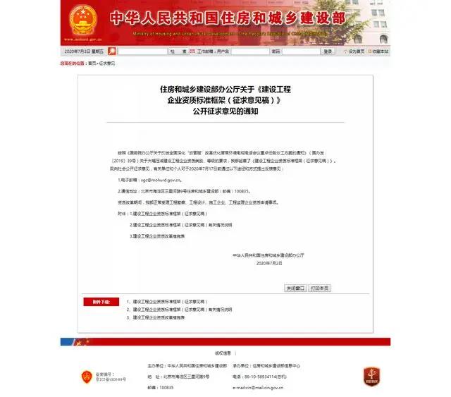 2020年7月2日住建部公布企業(yè)資質(zhì)改革征求意見(jiàn)
